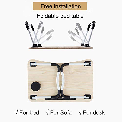 SCIENTIFIT DESIGN: Curved desktop edge, curved tabletop, ergonomic design, protective layer around the desktop, so you can feel comfortable when using. The desktop card slot and cup slot design makes it easy and convenient to put mobile phones, iPads, books, water and beverages on. The anti-slip and W-legs are stable and the legs are folded to save space and flexibility.