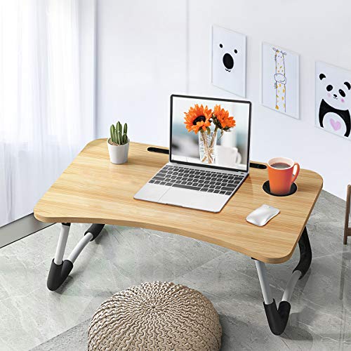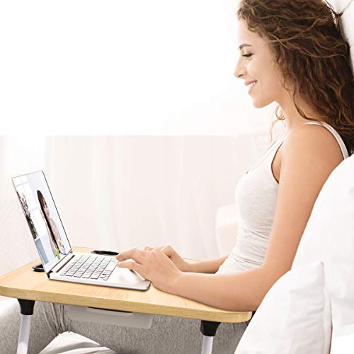 ★【Multifunction Laptop Bed Table】BOPUROY lap standing desk built-in iPad stand groove for holding ipad,kindle or smartphones,and also comes with a table cup holder to store cups well and storage drawer to store some things.Great choice for laptop and writing on bed balcony sofa ,etc.
