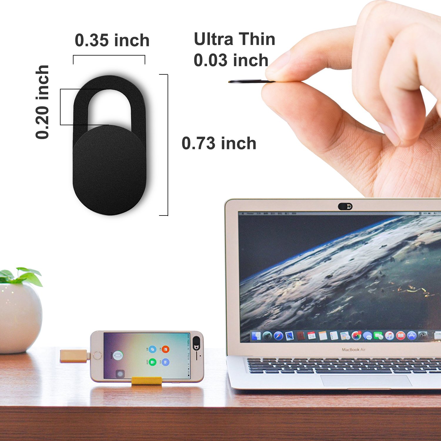 【PERFECT COMPATIBILITY】 – Our Webcam Cover compatible with the front-facing camera of laptops, PC, smart phone and tablets ,computer. It measures only 0.07 inches in thickness so it will not interfere with the closing of your laptop lid